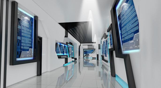 此展区采用的是环幕投影技术,环幕投影又称环幕投影系统,包含环幕系统和环幕投影。环幕投影系统分为立体环幕投影和非立体环幕投影。环幕(立体)投影系统是一种视听高度沉浸的虚拟仿真显示环境,采用多台投影(通道)组成的环形投影屏幕,环形幕半径通常有100~360弧度不等,由于其屏幕半径宽大,观众的视觉完全被包围,再配合环绕立体声系统,使参与者充分体验一种高度身临其境的三维立体视听感受,获得一个具有高度沉浸感的虚拟仿真可视环境,是传统平幕显示设备不能比拟的,环幕投影最重要的应用就是立体投影系统。