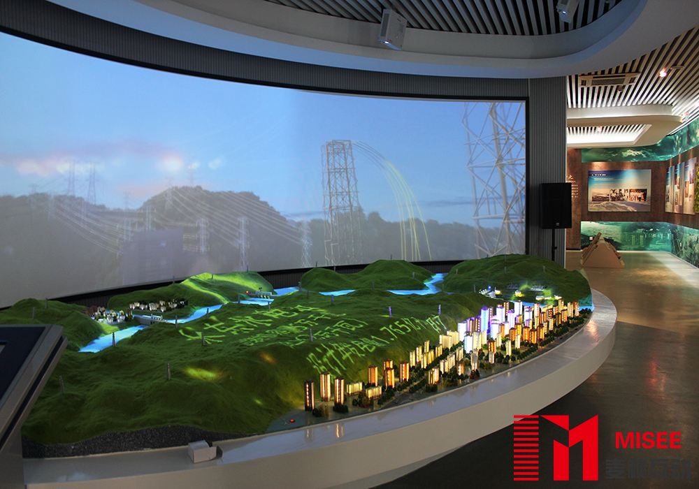 投影式沙盘是通过单通道或多通道投影机投影形式表现的,和传统沙盘的区别在于所有沙盘内容中的建筑和环境表现均由视频片源通过投影机投射在沙盘幕布上表现的,不需要单独制作立体沙盘,投影式沙盘的优势在于他的灵活性,比较适合表现大环境沙盘表现及临展形式沙盘。